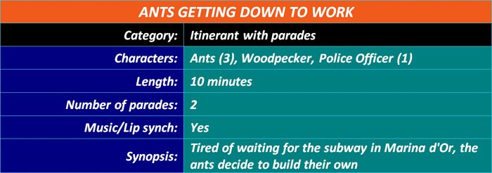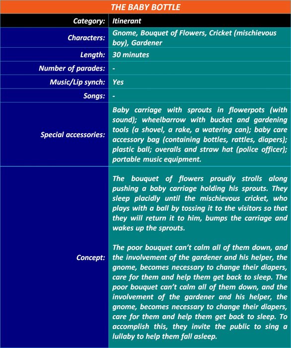 Given the dimensions of the Vacation City and the need to have the performances and surprises that we had prepared succeed each other in all the corners of the complex, it was necessary to design and build a mobile support unit, driven by a non-polluting electric motor, to transport the characters to the different animation points from the operations center.